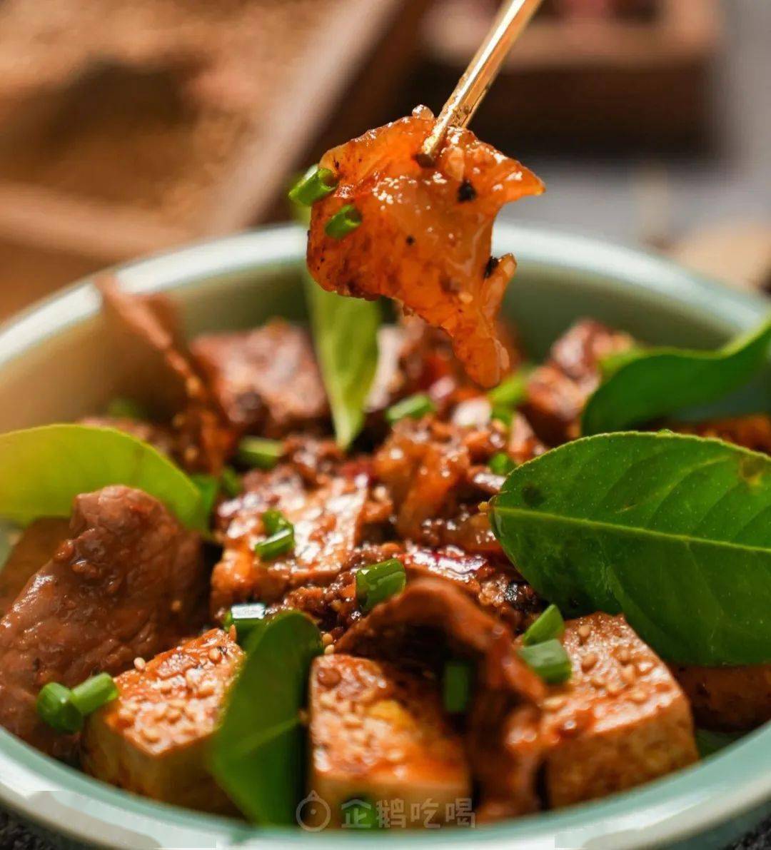 牛筋牛舌提供不同弹嫩的口感,和牛肉末带着脂香,这样三重肉肉加持的麻婆豆腐,吃起来别提有多上头了~