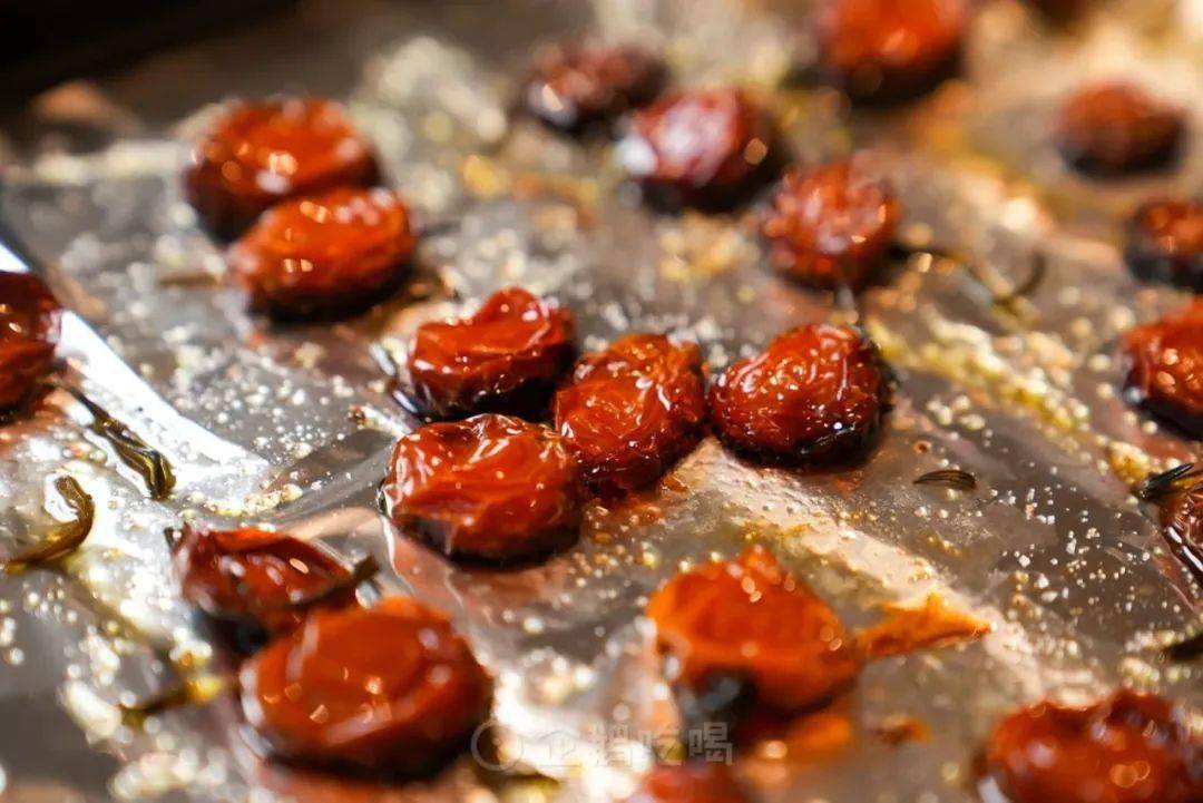 这样烘烤过的番茄,风味非常浓缩,是一口爆汁的番茄小炸弹。