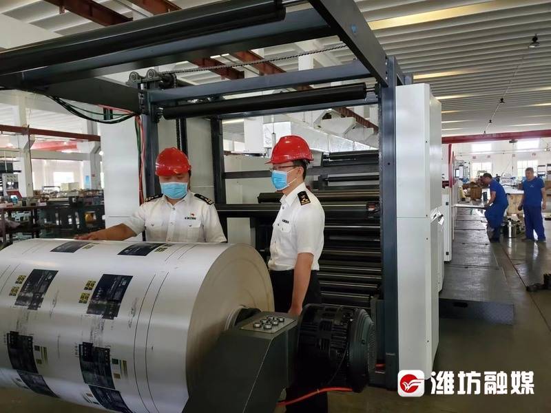 潍坊海关工作人员在包装纸加工贸易企业调研。