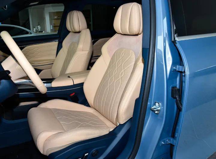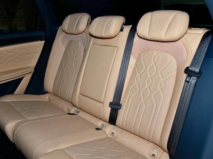 新款车型车内座椅采用皮质+翻毛皮材质混搭包裹,功能方面支持主副驾驶座椅电动调节,前排座椅加热/通风/按摩,驾驶位电动座椅记忆等。前排座椅保持了宽大的造型设计,椅面加入丰富的缝线装饰,内部填充物属于软硬程度适中的类型,乘坐体验舒适。