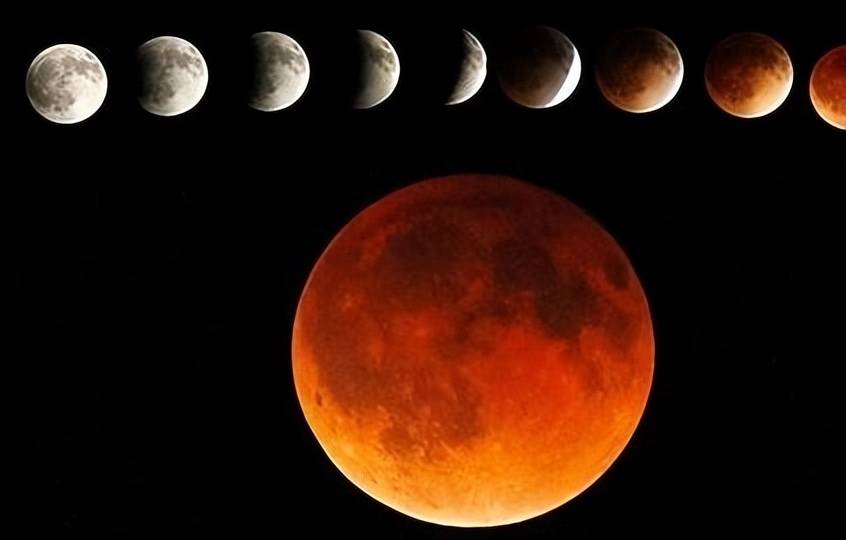 全食是最壮观和令人惊叹的月食类型之一。当地球完全遮住了太阳光直接照射到月球上时,月食进入全食状态。此时,观察者看到的月亮变暗,逐渐变成橙色或红色。这是因为地球大气中的日落和日出的光线在经过大气层散射时被折射到月亮上,使月亮呈现出红色的色调。
