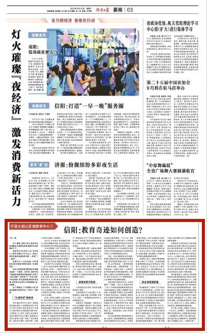 这个暑假,地处大别山革命老区的信阳因为亮眼的教育成绩再次站在聚光灯下: