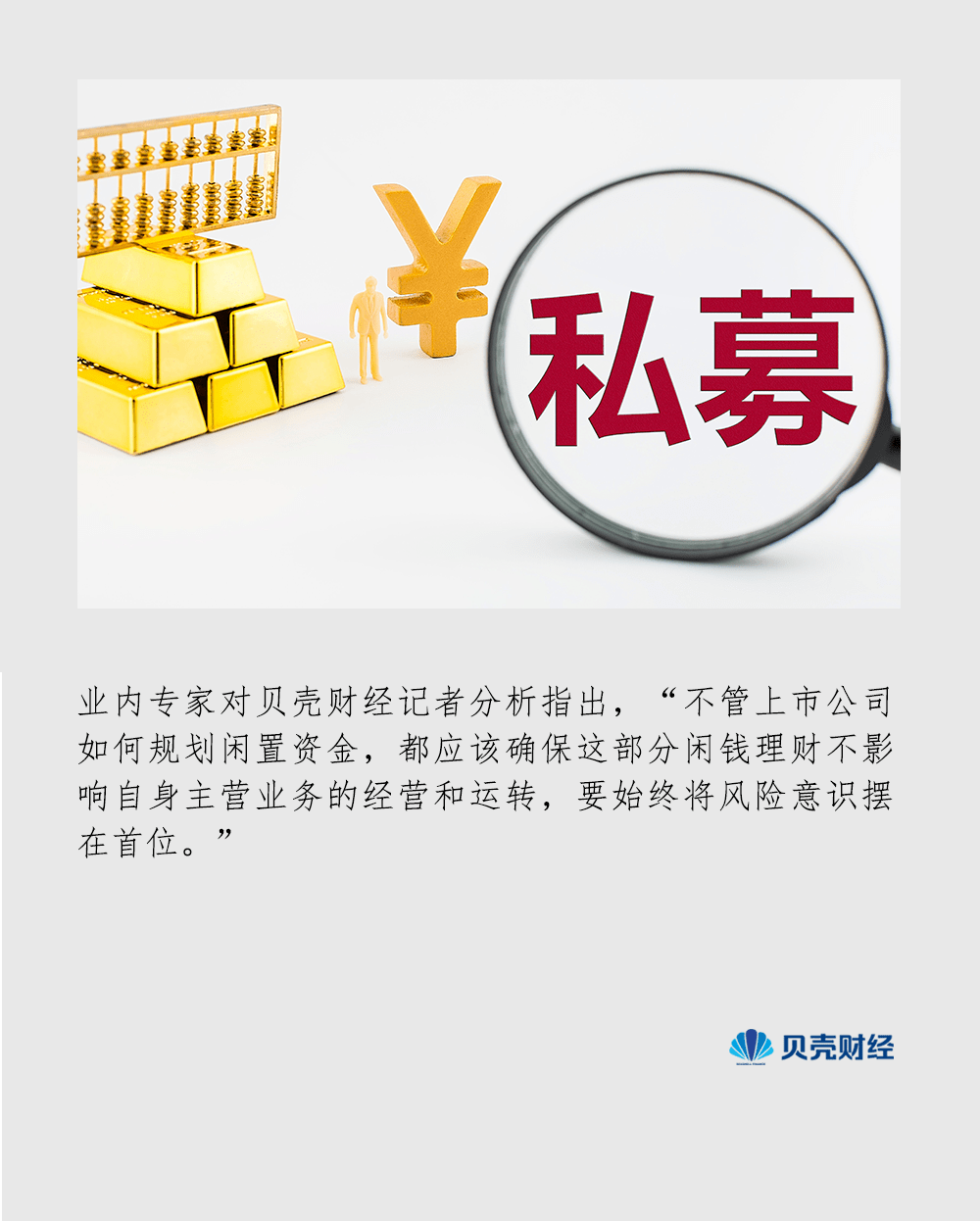 畅力资产董事长兼投资总监宝晓辉对贝壳财经记者表示,“我的建议是可以做一个整体规划。对于上市公司闲置资金,上市公司应对其进行统一划分,并根据自身经营情况采取多渠道的投资利用,如果这笔闲置资金是长期用不到的,可以选择一些经营偏长、回报率较高的公私募基金产品,而如果这笔闲置资金闲置期限较短,还是建议上市公司购买一些货币基金或是短期债权来获取一个短期收益,当然不管上市公司如何规划闲置资金,都应该确保这部分闲钱理财不影响自身主营业务的经营和运转,要始终将风险意识摆在首位。”