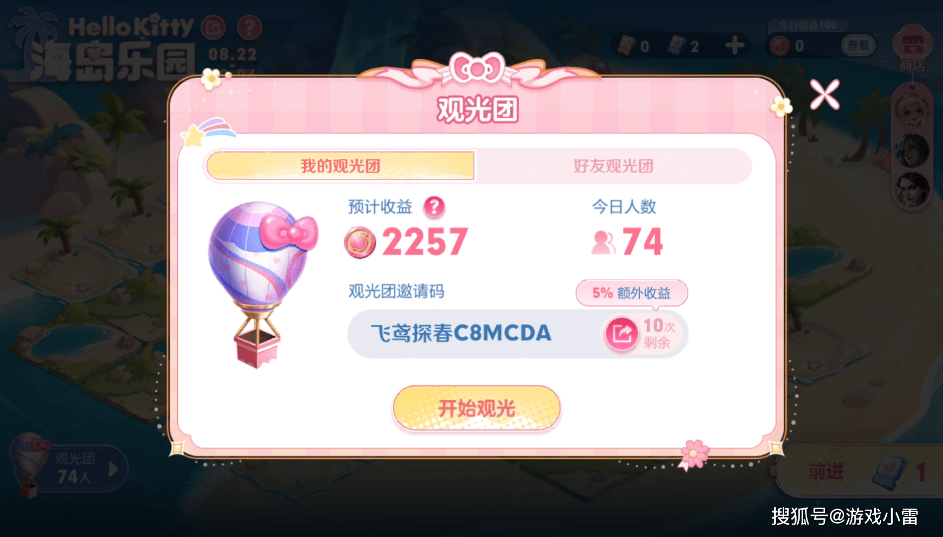 在此活动当中,有一个分享观光团的口令模式,也就是分享邀请码了,只需要玩家们多多进行分享,就可以获取更多的游乐券以及收益,并且观光团人数只要越来越多的话,那么其中的收益也将会越来越多,毕竟兑换小乔的三丽鸥联动星元皮肤主要也就是收益,那么只要收益越来越多的话,到达兑换数量2500收益也是轻轻松松,并且分享观光团口令的这个方法,也是没有任何限时间的,各位玩家们可以进行任意的分享,多分享一份就多一份人数,多一份人数那也就多一份收益!其实总结来说,此活动也就相当于是大富翁加新年刷礼物的活动的合并版。