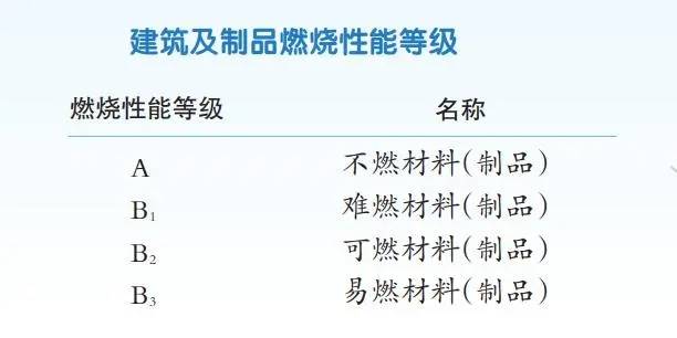 就目前的建筑外墙保温材料应用而言,清华同衡市政规划研究所副总规划师、城市公共安全规划研究所所长万汉斌介绍,根据《建筑材料及制品燃烧性能分级》(GB8624—2012),我国将建筑材料分为4个燃烧性能等级——A、B1、B2、B3,依次对应不燃、难燃、可燃、易燃材料(制品)。