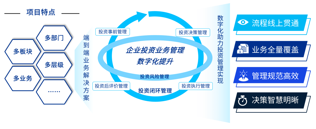 在时代经济发展过程中,企业在聚焦核心主业谋求革新的同时,凭借其自身技术优势、产业链优势、生态优势和区域优势等,也在悄然地进行着多业态、集团化的战略扩张。随之发生的就是企业投资行为的多样化,不再是过往围绕主营业务单一的投资行为,并购公司、专利研发、兴建厂房、土地流转、租赁买卖等投资交易行为贯穿在企业发展过程中,企业通过投资业务实现对资源的有效利用,助力企业拓宽业务领域、布局新兴业态、夯实核心竞争力,提高资本运作效率及价值。投资作为企业运营管理中的核心业务,在规划和发展过程中应更聚焦全局化、精细化、科学化、数字化的管理,更好地契合企业发展战略,推动企业战略落地执行。