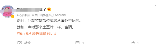 「别问,问就特殊部位或者从国外空运的。就和,当时那个土豆片一样,富硒。」