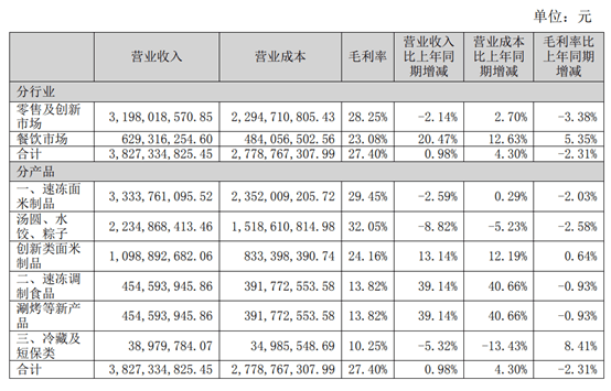 今年上半年,三全食品主营产品的销售情况