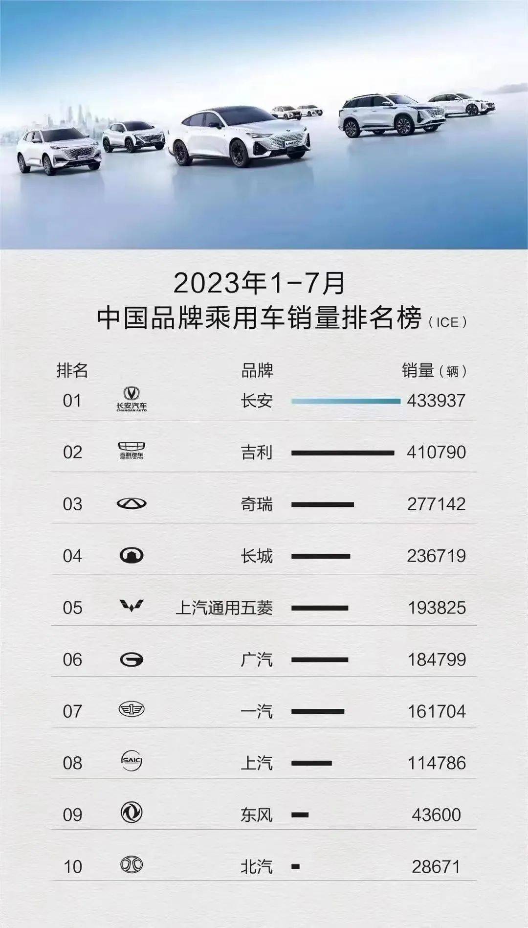 一份2023年前七个月中国品牌乘用车销量排名榜中,长安汽车高居榜首,紧随其后的是吉利和奇瑞。然而,近期月销量多次突破20万辆的比亚迪却未出现在榜单中。另一份2023年上半年中国市场SUV销量排名榜中,长安CS75同样排名第一,比亚迪宋系列、理想L8等热销车型均未出现在该榜单中。