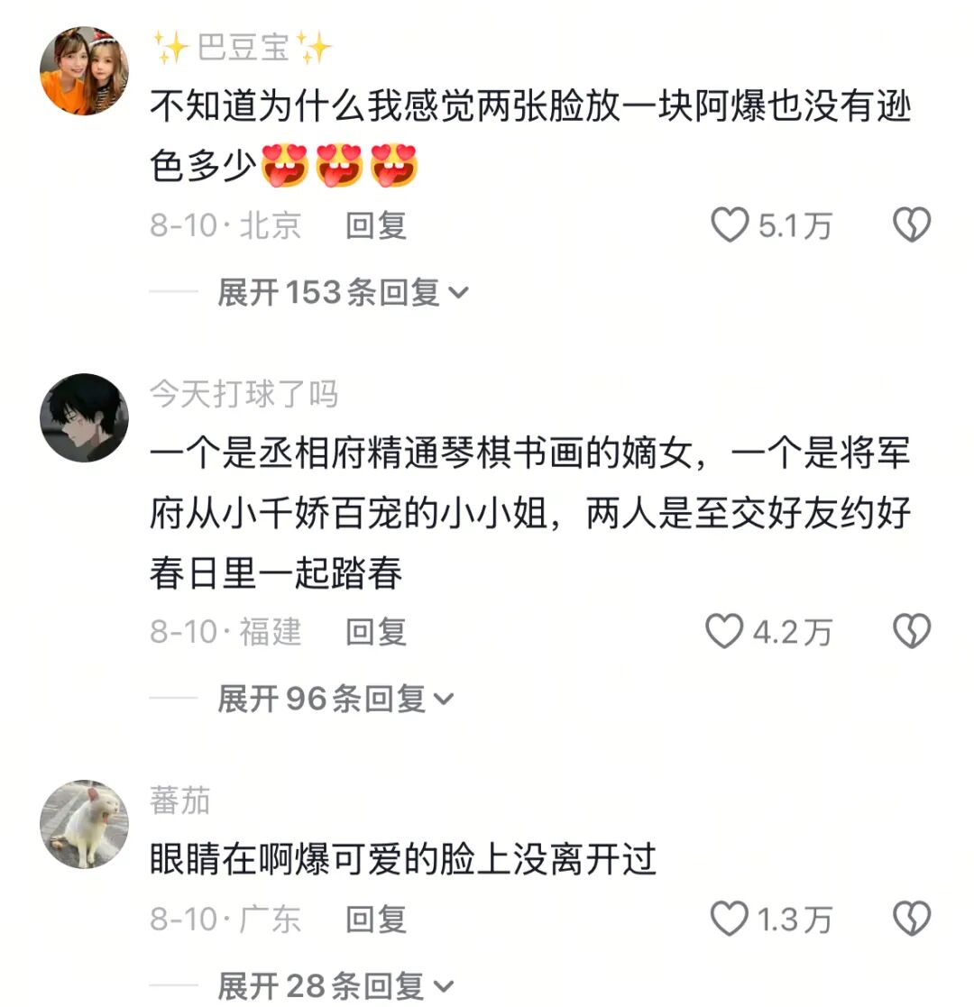 发一条爆一条,评论区尽是夸赞和许愿,希望她们把自己脑海中的小剧场拍出来。发布策略也很有趣,方圆发“正片”保障美貌与质感,阿爆发“花絮”负责有趣和可爱。