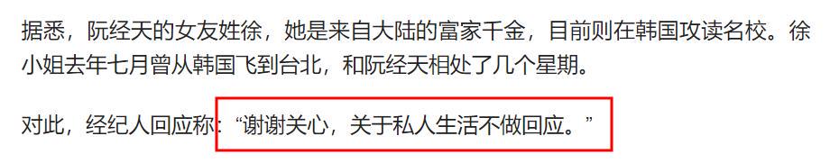 只不过面对新恋情登上热搜,阮经天本人并未做出回应,反而是他的经纪人回应了。