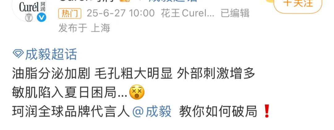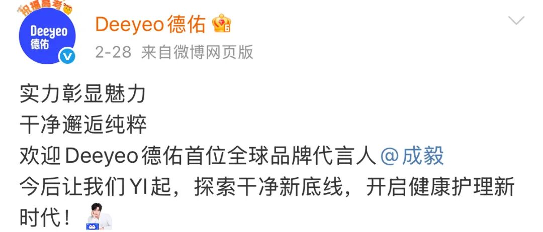 这种金字塔式的代言很聪明,既不会降低艺人的商业价值,还能通过日常感和亲民感强化成毅的“接地气”属性,也是现在顶流们的另一种商业思路。