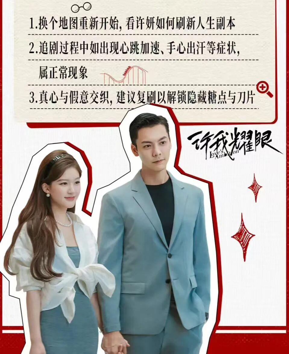 《许我耀眼》是都市爱情剧,是以爱情为主线的角色成长剧,并且还是共同成长剧。剧中,沈皓明和许妍的关系,一开始时,彼此都戴着假面具,在刻意营造的和睦氛围中相互欺瞒。