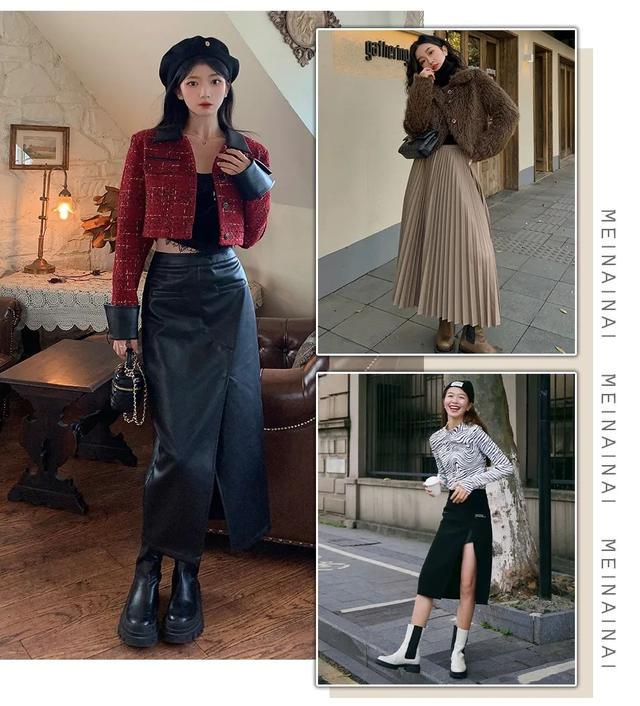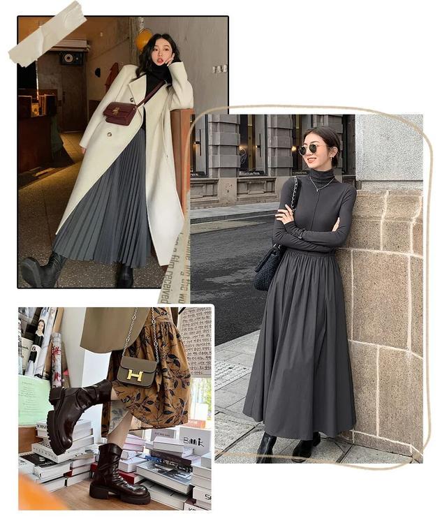 秋天出行穿搭的裙装里,最优雅的搭配当属是九分裙+短靴的组合,时髦高级还显瘦!