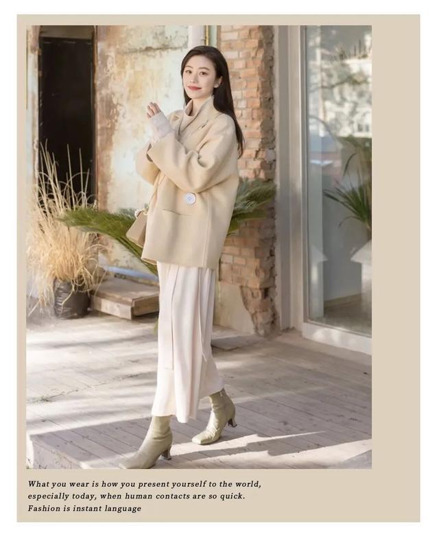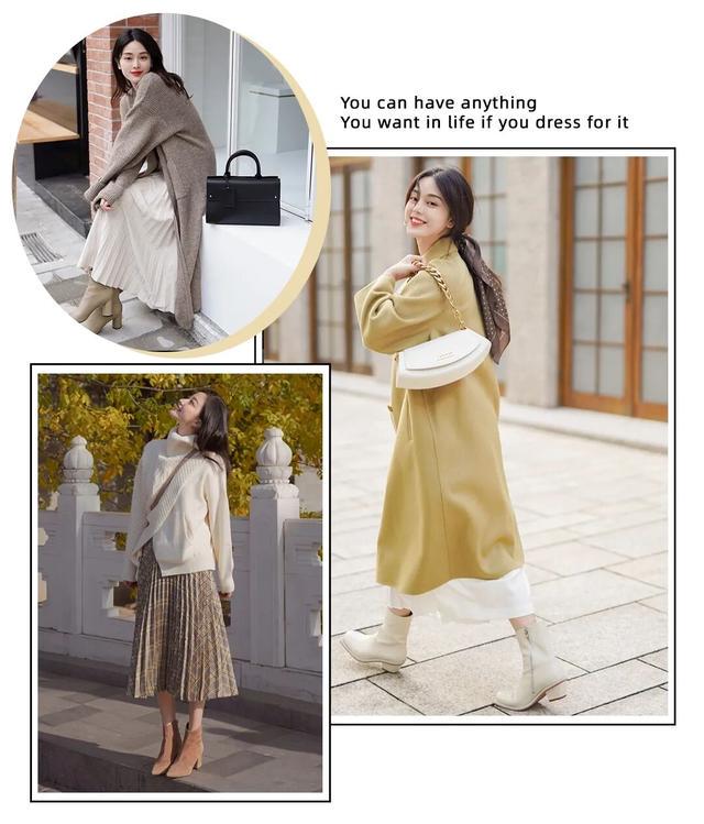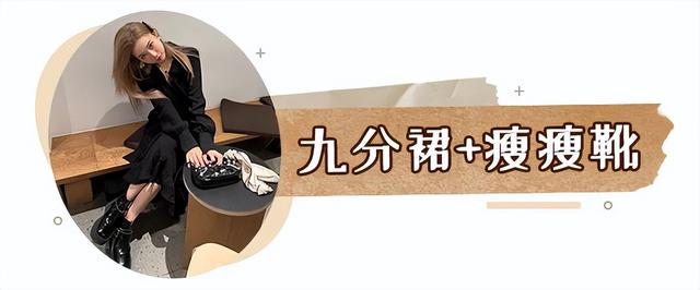 到了深秋会穿一些比较臃肿的外套,用九分裙和瘦瘦靴来制造轻盈感最合适不过了。