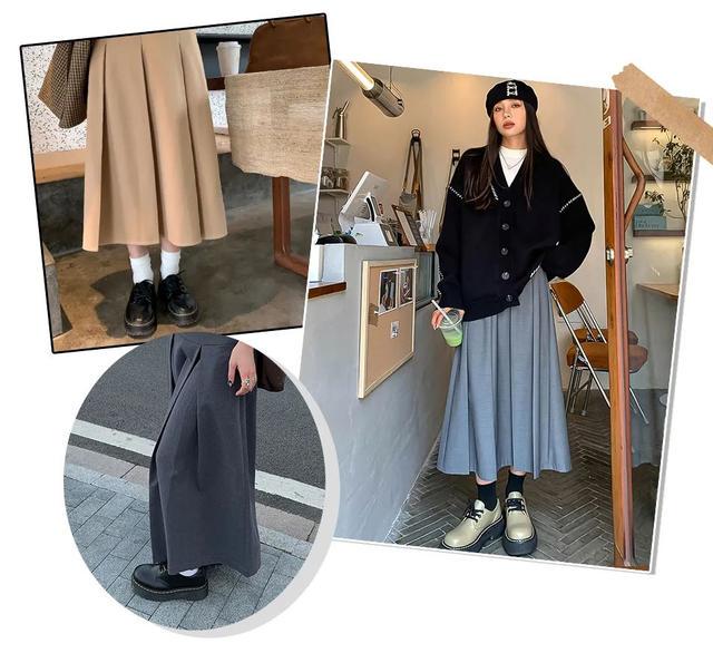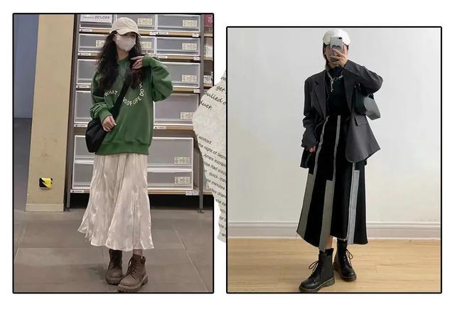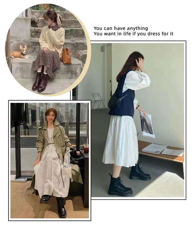 而且它和各种裙子都能搭!喜欢学院风的姐妹,百褶裙搭配马丁靴,活泼又减龄,少女感十足!