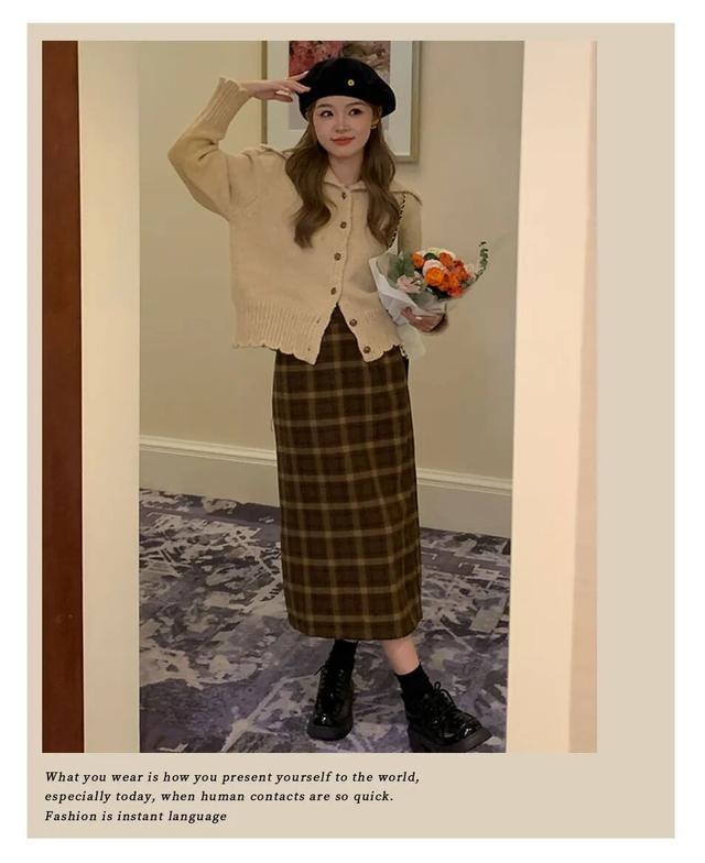 秋天穿格纹裙有满满的氛围感拉满,韩系女主角的既视感!