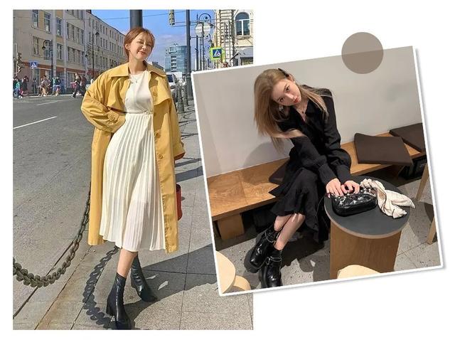 而且,比起马丁靴和切尔西靴,瘦瘦靴多了点慵懒感,搭配长裙很容易搭配出法式风情!