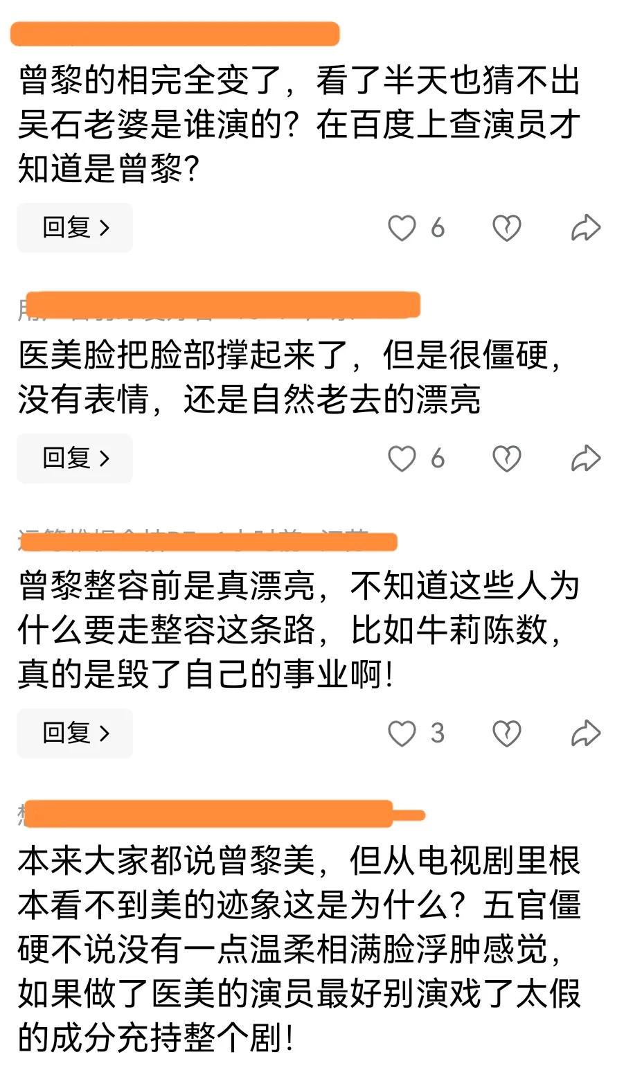 剧集背景设定在特定年代,角色的形象本应贴合年代质感,可她脸上明显的医美痕迹,让整张脸显得僵硬。