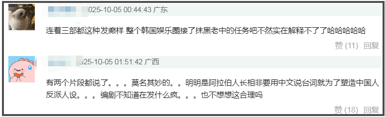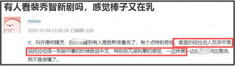 裴秀智新剧又辱华!阿拉伯反派一做坏事就说中文,营销号捂嘴删评