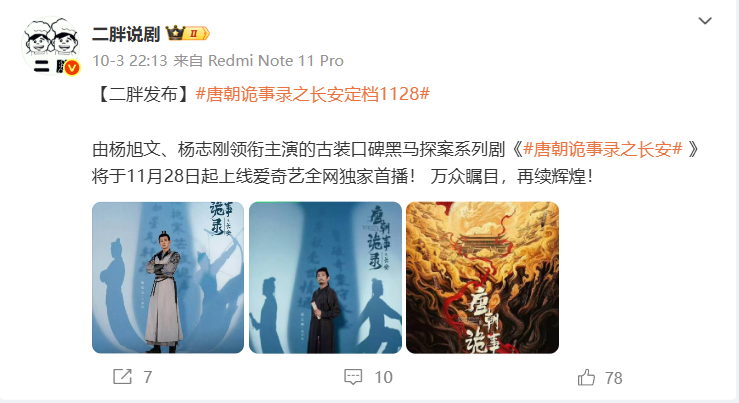 据权威电视剧博主爆料,《唐朝诡事录》的第三部《长安》,将于11月28日,在爱奇艺正式上线开播。