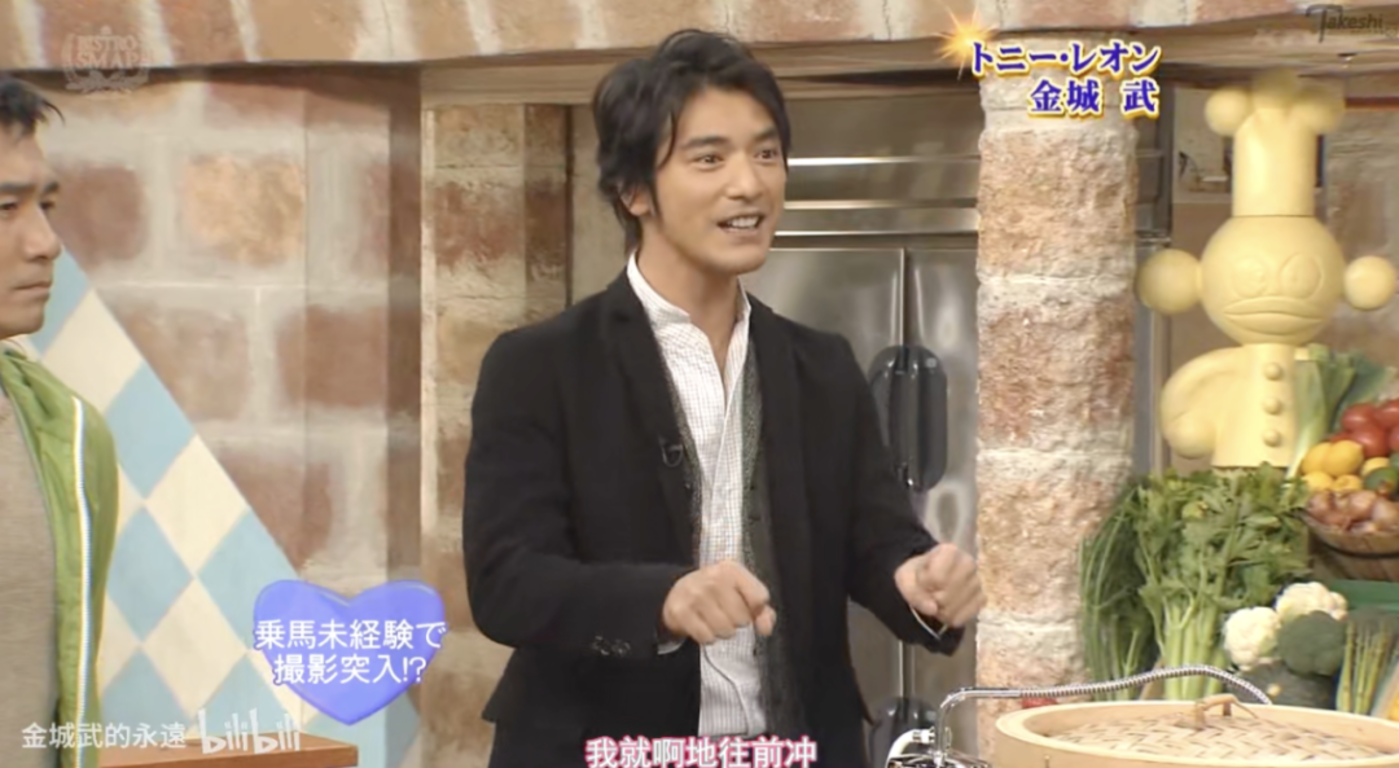 但金城武不得不去做的时候,他也能像他准备演员工作一样,好好地完成。2008年,金城武和梁朝伟去SMAP的综艺宣传时,能说日语的他是那个负责插科打诨的人,接住大家的玩笑,主动聊起拍张艺谋电影时的趣事。