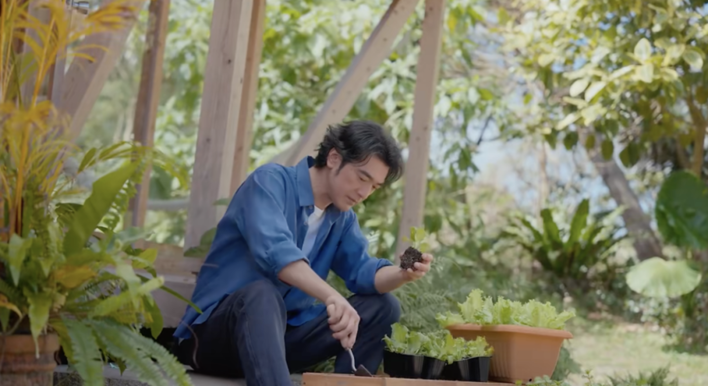 去年,他的一位多年老友向媒体透露,「他现在在种田……养花养草。」就像他在2025年无印良品广告中表现的那样,一句话都没有说,在自然的环境中身着素衣,侍弄花草,干净、简单、安静。