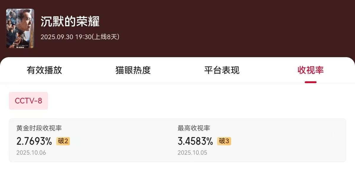 正在热播的谍战大剧《沉默的荣耀》,开播后力压同题材的《守护者们》,以破3的收视率,成为热播剧中的最强音。