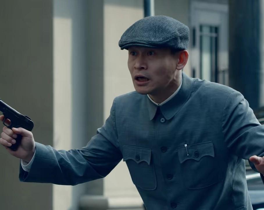 开枪杀掉我方地下工作者,被吴石拿枪指头时,伴随着一个不自觉腿一软,膝盖跪地的动作,搭配惊恐的眼神,成功演出了人物的害怕。