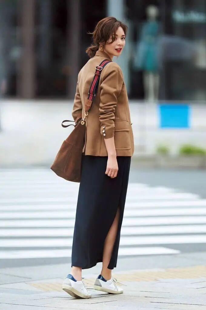 裙子“剪一刀”,恰好打破了西装刻板严肃的印象,是各种场合都不会出错的组合,尤其是走优雅路线或高智风格的女士,更容易get这组搭配的好看。