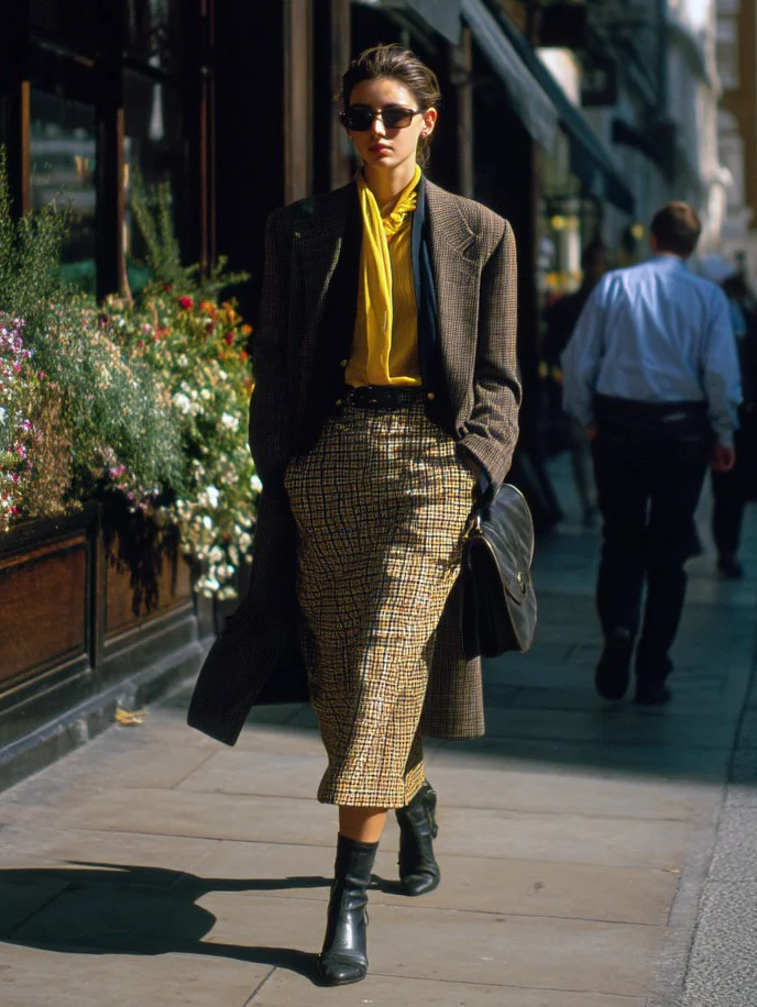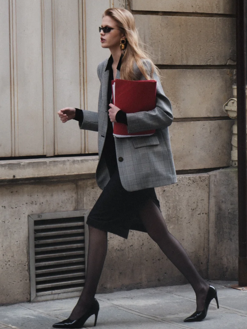 极具复古氛围的格纹半裙,与素色的西装外套,构成秋冬最独特吸睛的look,保留着恰到好处的文艺气质。