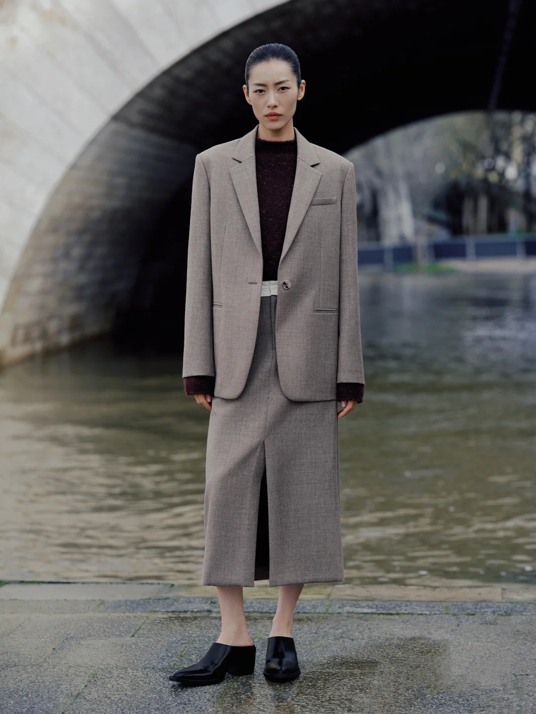 再柔美的半裙,都能因为一条属性硬朗的西装,而不再只有温柔这一标签。