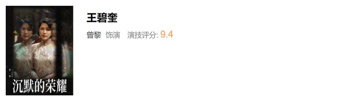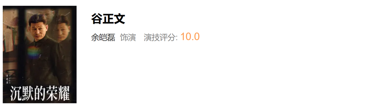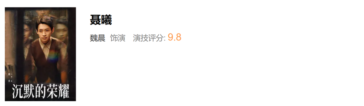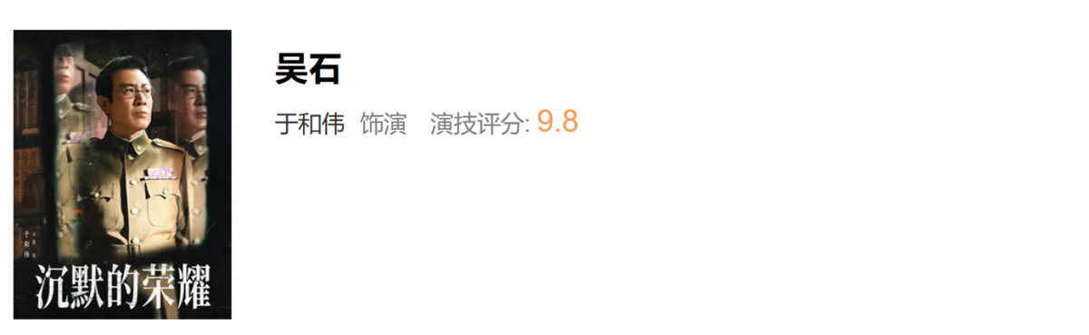 《沉默的荣耀》演技评分,于和伟,曾黎断层差距,隆妮评分意外
