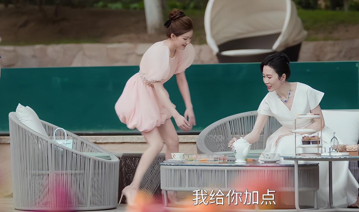 前期许妍为了迎合自己来自高知家庭的人设,也为了讨作为富家太太的婆婆欢心,只要来到男主家的别墅,女主的穿着总是高级又贵气。