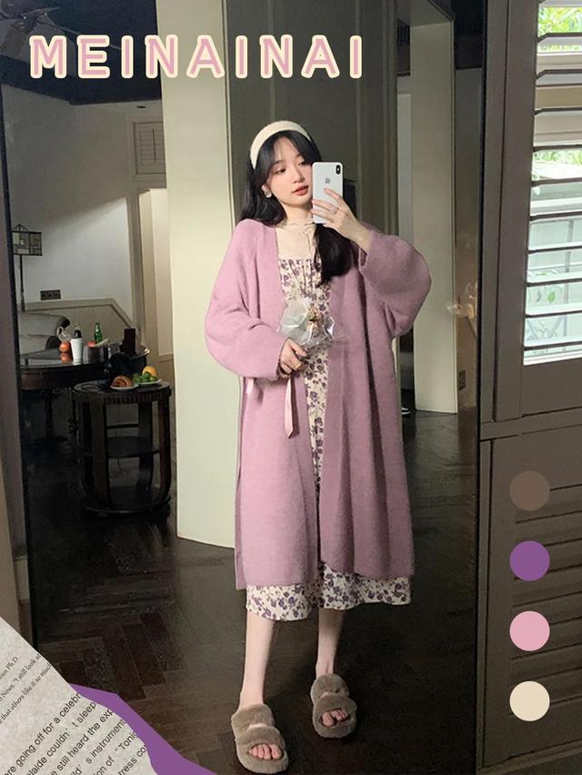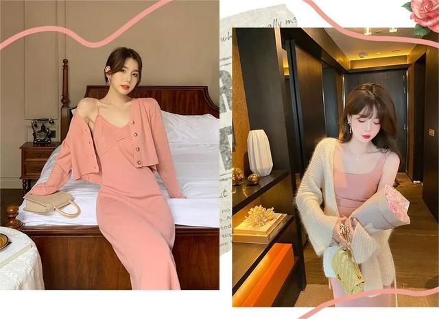 纯色系的连衣裙不挑人,而且也非常好搭配,外搭一件针织开衫,好温柔~
