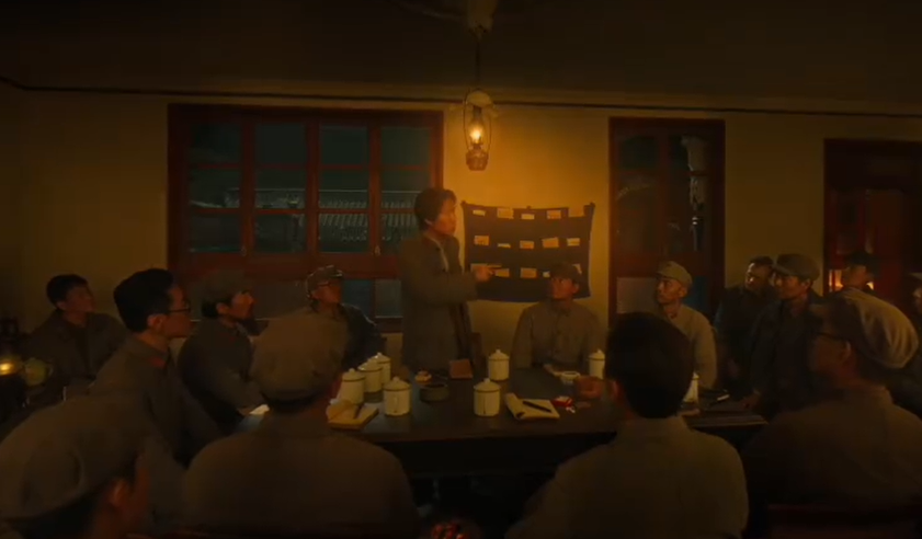 在毛泽东(于和伟饰)的伟大领导下,中央红军从江西于都出发,经过11个省,直到1936年10月红军三大主力会师。