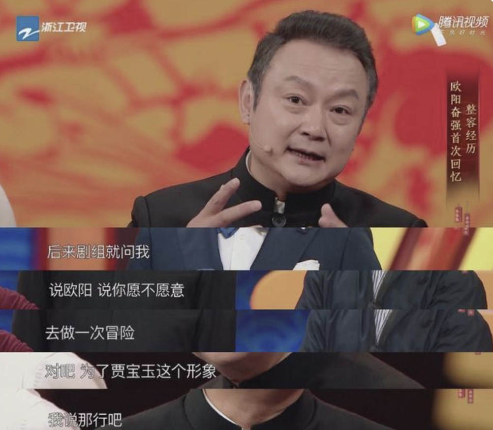 欧阳奋强的下巴比较短,不够上镜,为了贴合宝玉的形象,在剧组的建议下他去做了整形手术,往下巴注射硅胶。八十年代的技术没现在这么成熟他是冒着风险去做的。后来拍戏结束他想取出来,但是听到医生跟他讲手术过程的时候被吓到了所以就一直保留到现在。如今快40年过去只要一刮风下雨他的下巴就会痒。
