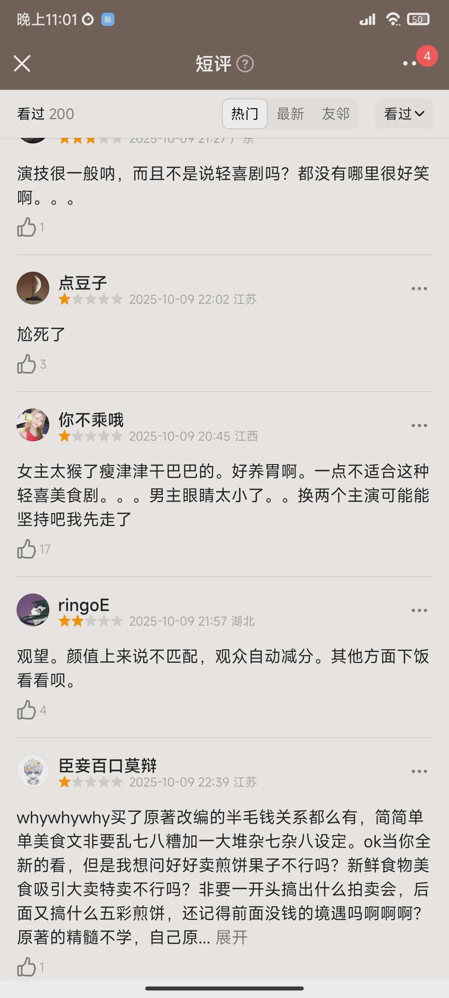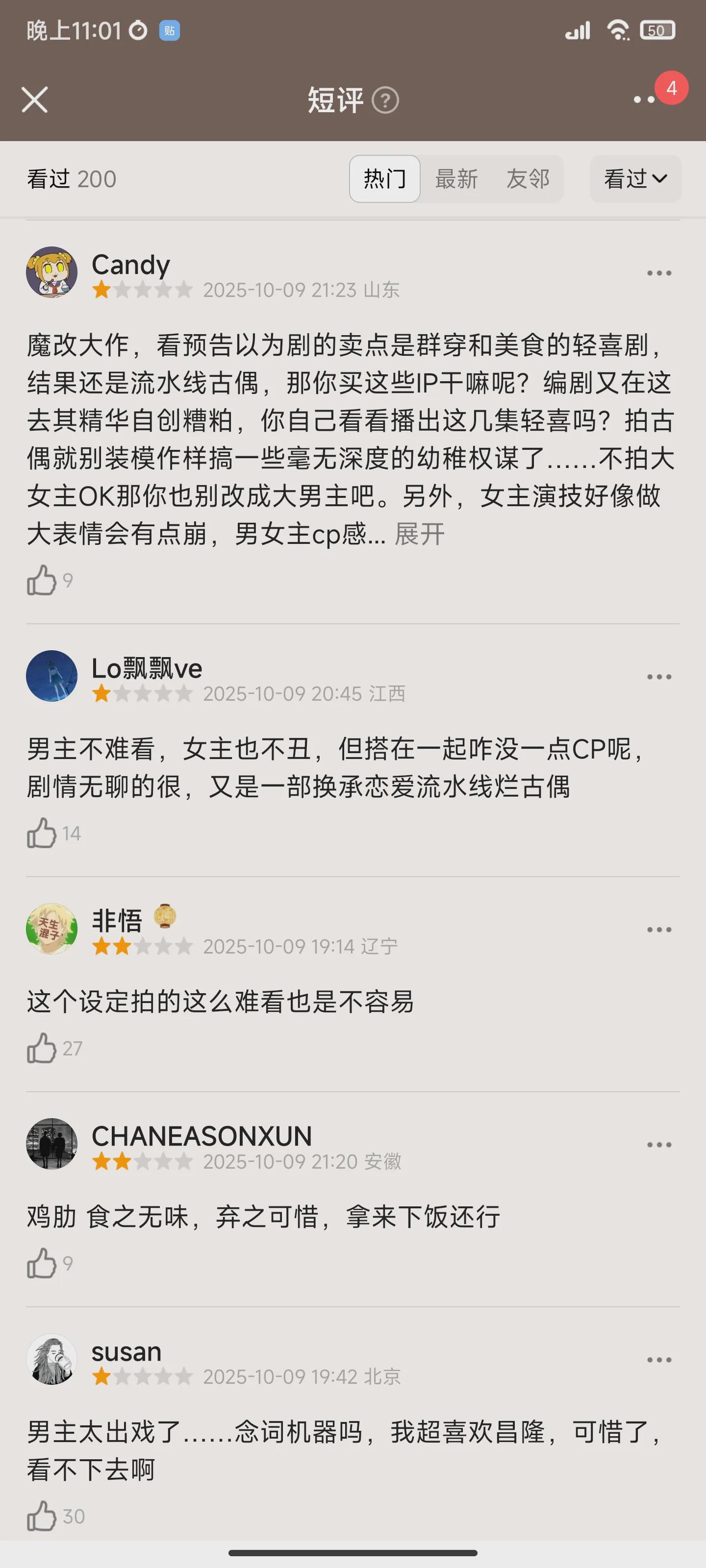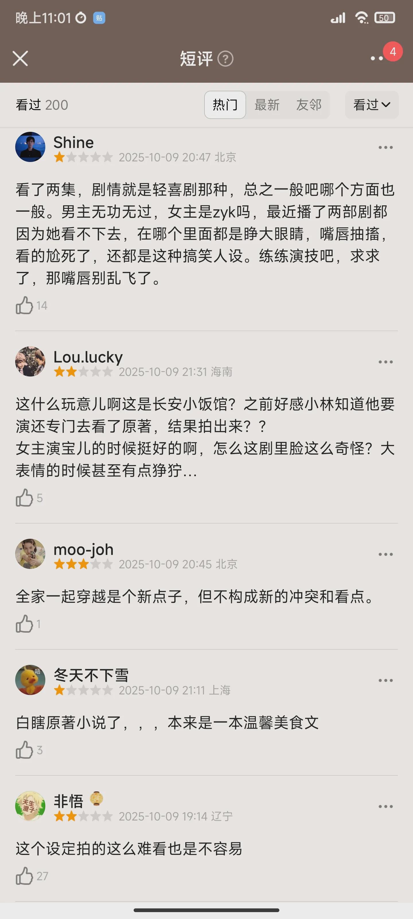 首播口碑也出来了,评价可谓是好坏掺半。差评主要集中在魔改原著上,观众评价一针见血,就是把《长安小饭馆》改得妈都不认识。原著没有穿越,本来是很温馨的创业美食文。改成剧后,好像除了主角名字,就没什么关系了。以美食为主的剧,4集过去除了煎饼果子,没有一道像样的菜展示,显得有些敷衍。