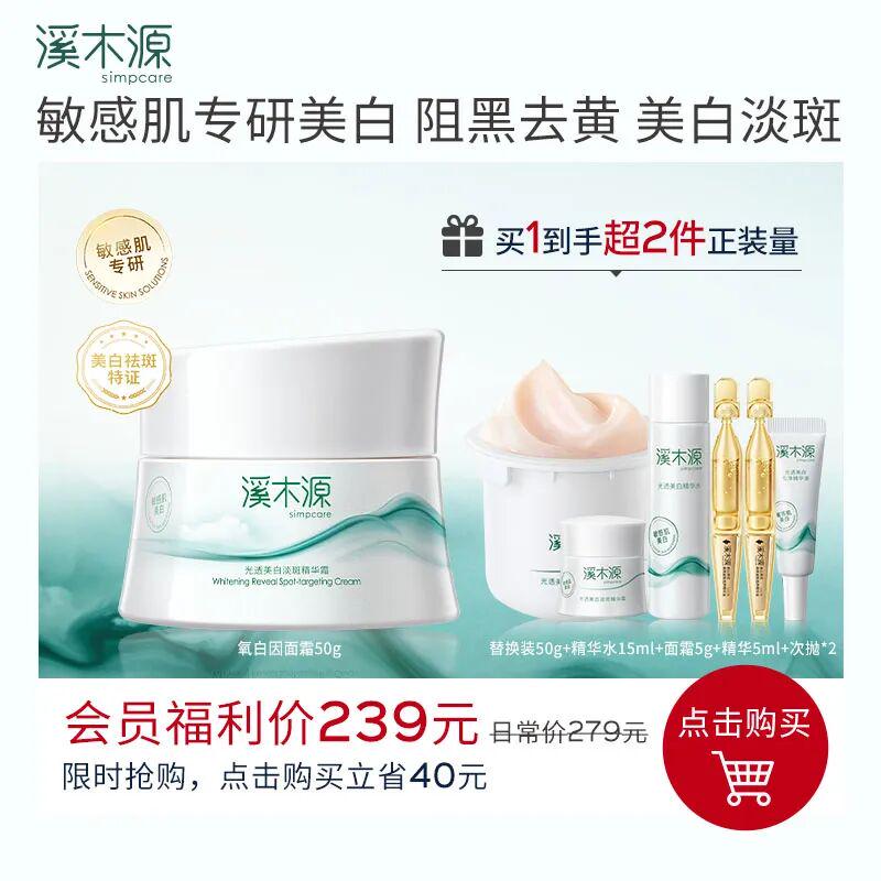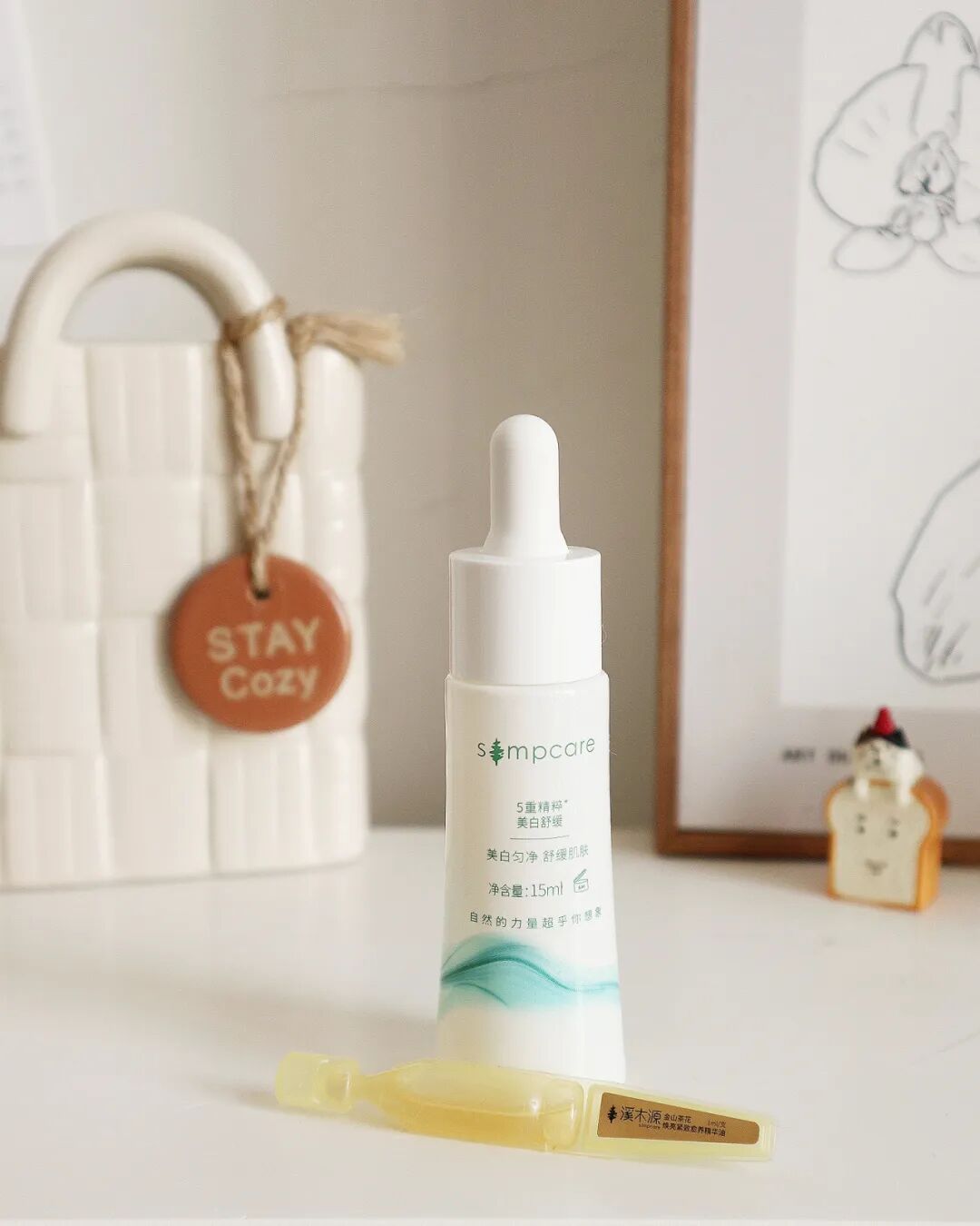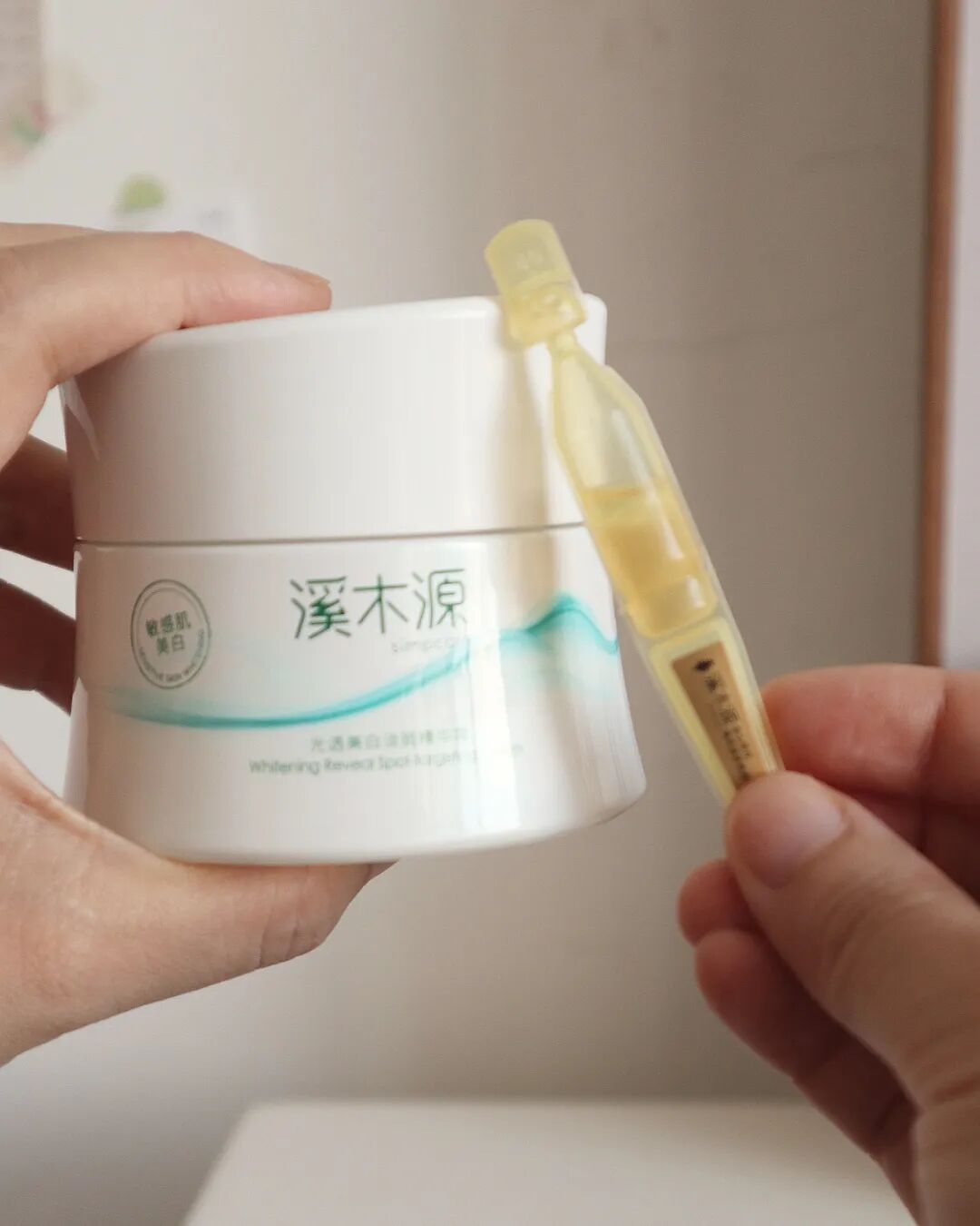 我们做了功课,原来是溪木源下重本研发的氧白因的功劳。它的美白力足足比熊果苷高7584倍,比VC高45倍~