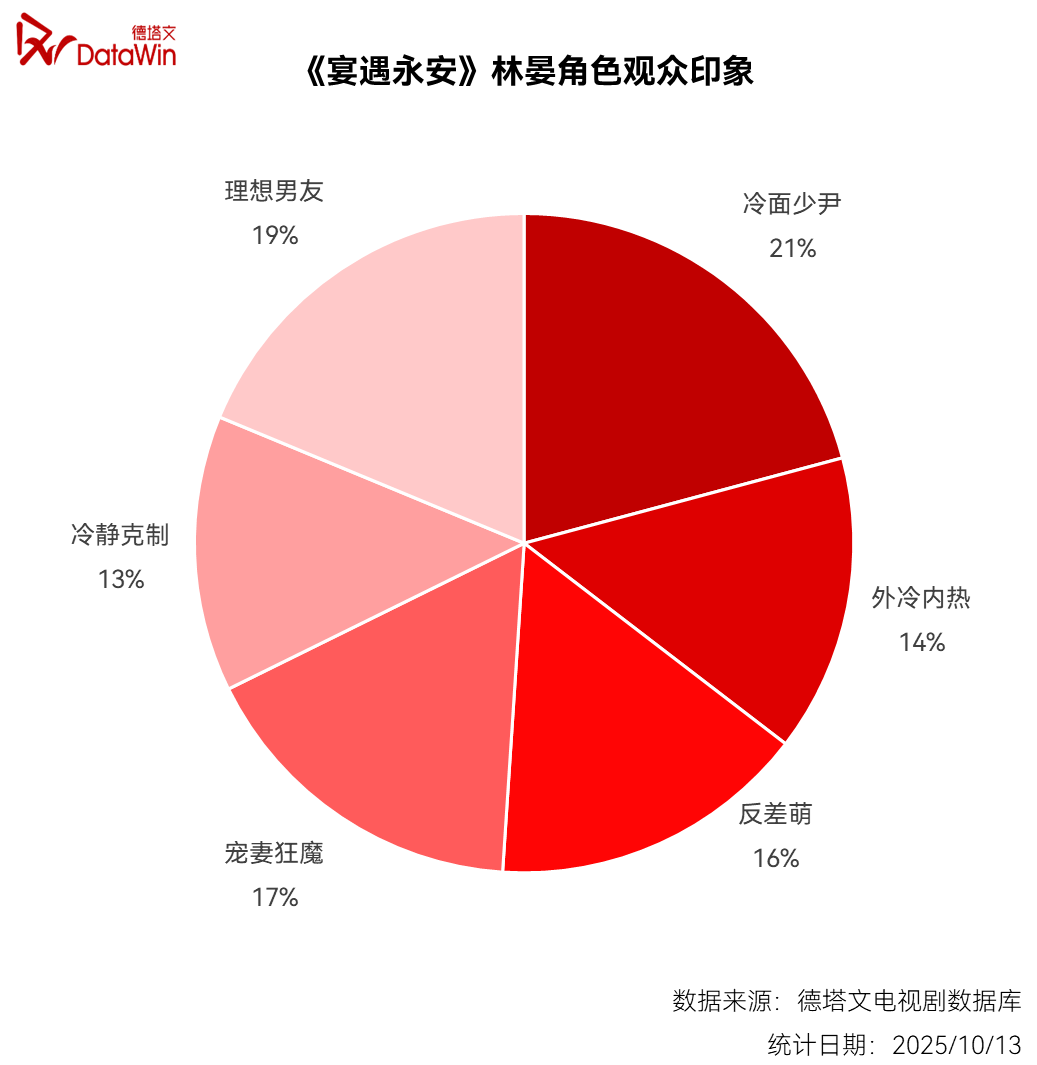 因此,在《宴遇永安》林晏角色观众印象图中,“冷面少尹”“理想男友”“宠妻狂魔”“反差萌”“外冷内热”“冷静克制”成为六大关键词。可以说,李昀锐这种表演层面的把控,赋予了林晏层次丰富、立体饱满的反差苏感人设,成为角色获得观众认可的重要因素。