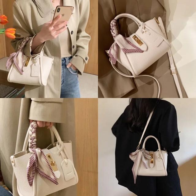 荔枝皮料看起来非常上档次,千鸟格丝巾缠绕手提,吸睛指数up。