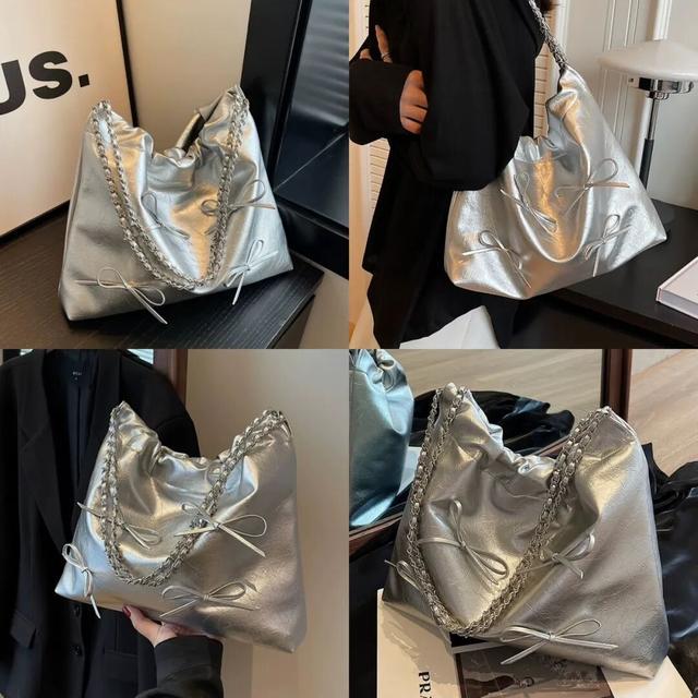 有被这只银色结托特包给迷住了!蝴蝶结设计也太少女了吧,完全就是甜妹必备