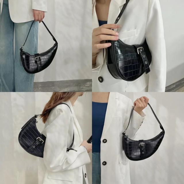 月牙包是像弯弯月牙一样设计的腋下包,它的包型圆润看着很可爱,轻轻夹在腋下是优雅随性的感觉,日常背去约会、游玩都很合适~