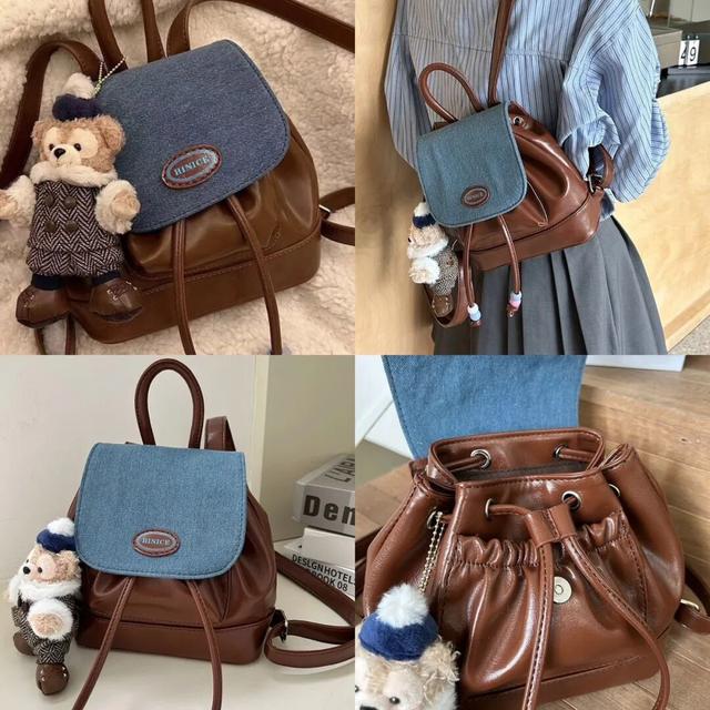 发现一只韩里韩气的双肩包,棕色撞牛仔,超复古!