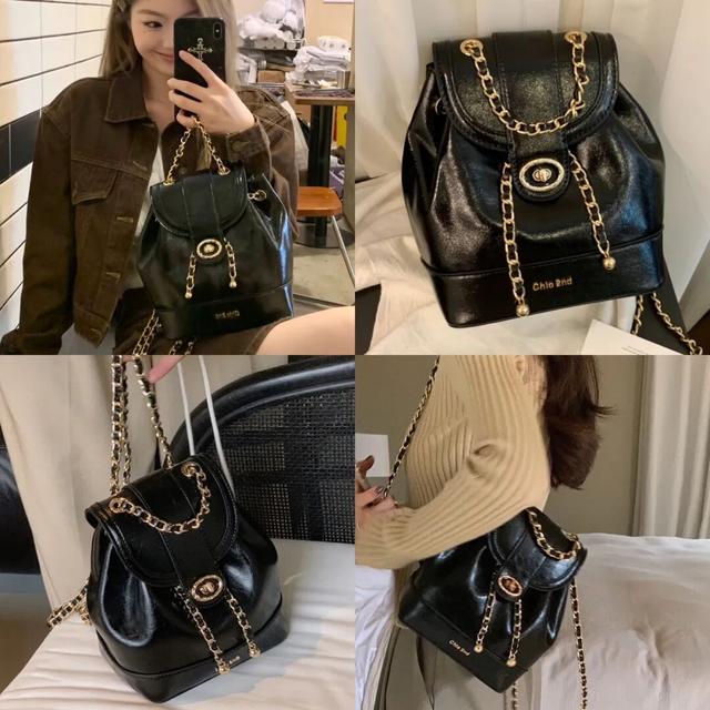 喜欢温柔淑女小香风的姐妹,这只黑色链条双肩包就很适合你!