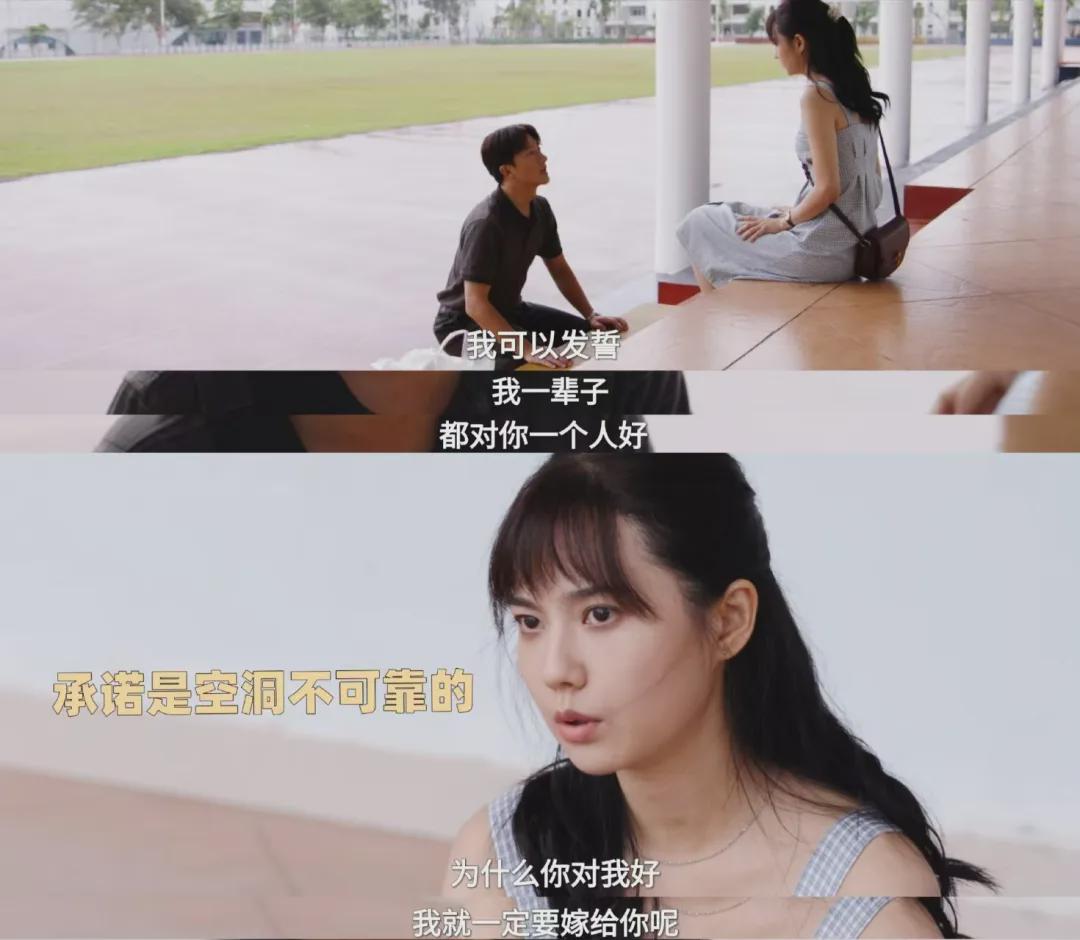 为什么你发誓一辈子对我好,我就一定要嫁给你呢?今天下不下雨?明天下不下雨?你都不一定说的准,你为什么敢在这里拍胸脯保证一辈子的事啊?