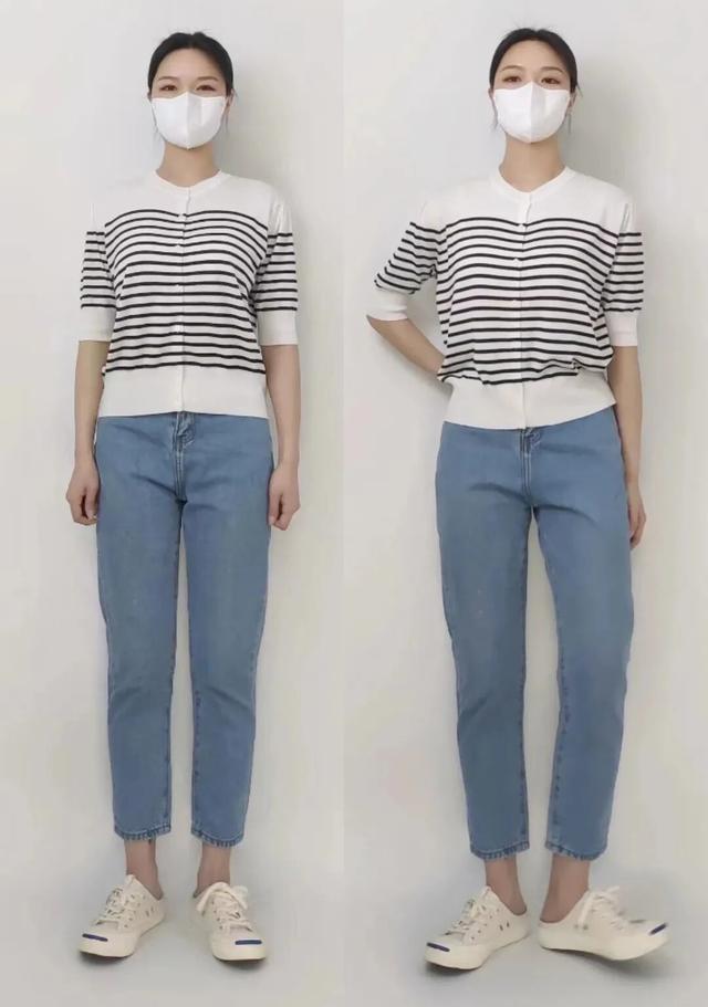 牛仔裤选择修饰小腿的小直筒裤,会比宽松的直筒裤显高显瘦,这点尤其适合小个子。