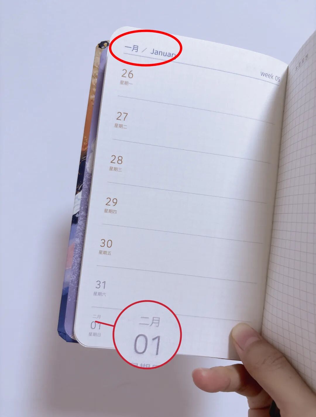 为了更方便记录,我们在同时一周出现两个月份的情况时,做了月份标注,这也是收集了很多用户反馈后新做的升级,我们希望这本手帐真的能成为每天陪伴在你们身边的好朋友。▼