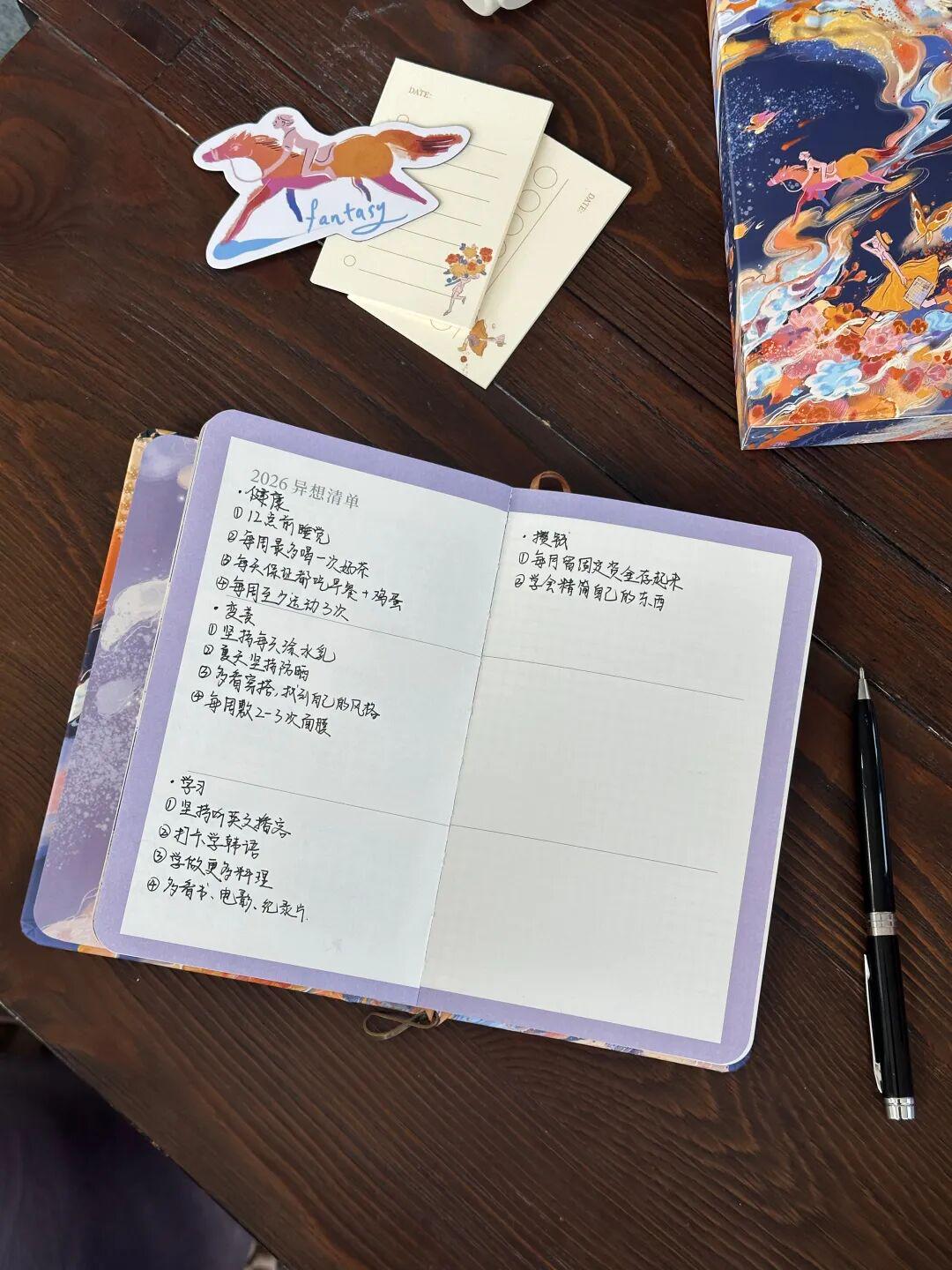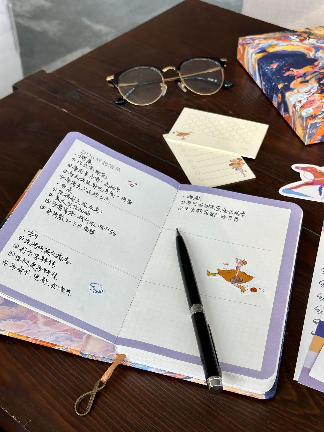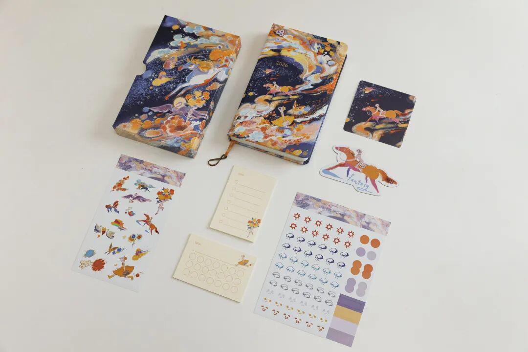力力为手帐创作的封面也是同样的寓意,明年是马年,这匹正在奔腾的马还有脚踩鲜花的女孩,都意味着一种期盼——未来可期,让我们大步迈向充满机遇、精彩和快乐的2026年。▼