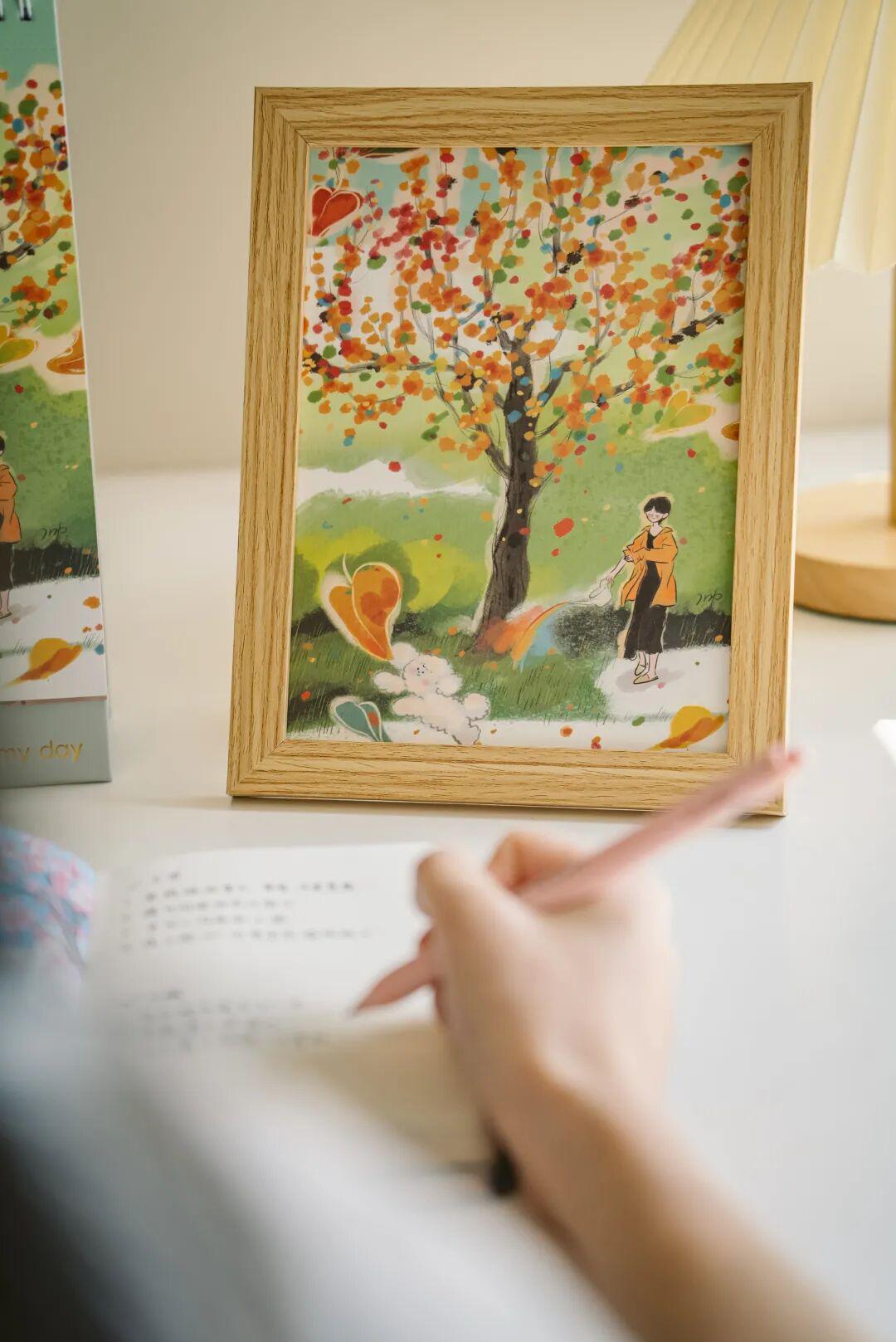 和用完就该扔了的台历不一样,里面的插画都可以当装饰画,上面做了虚线设计,方便撕下来。▼